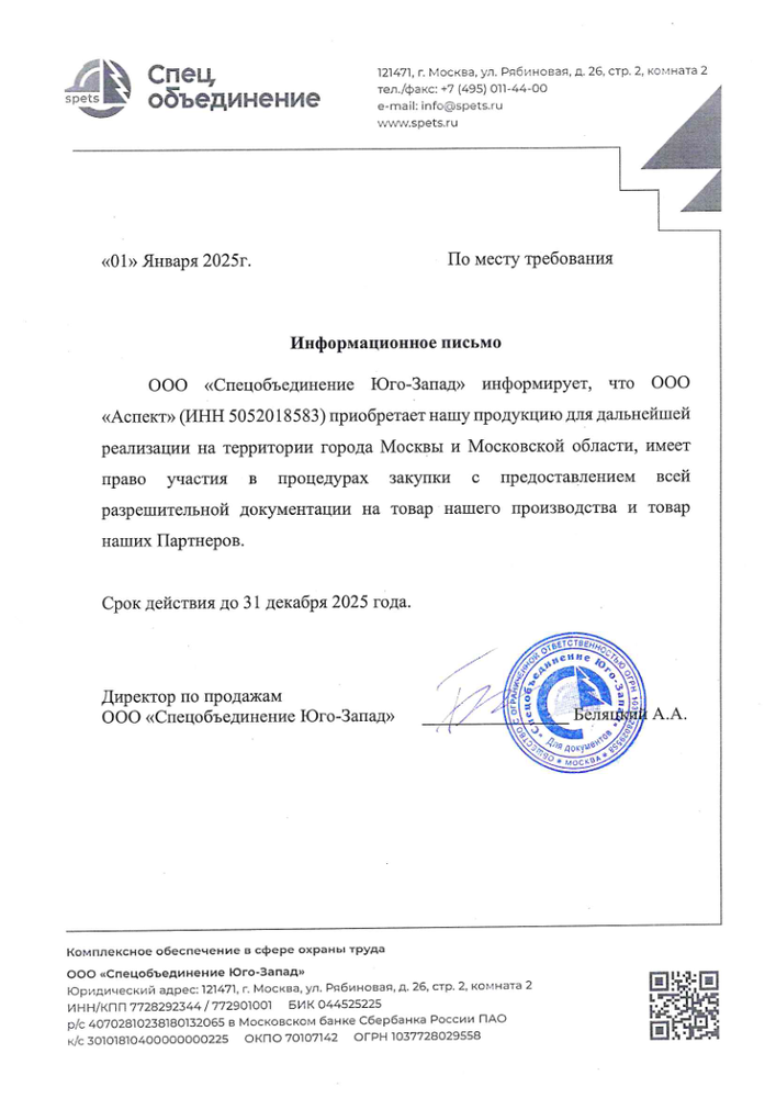 Также большое спасибо ООО «Аспект» за качественную униформу для наших сотрудников.