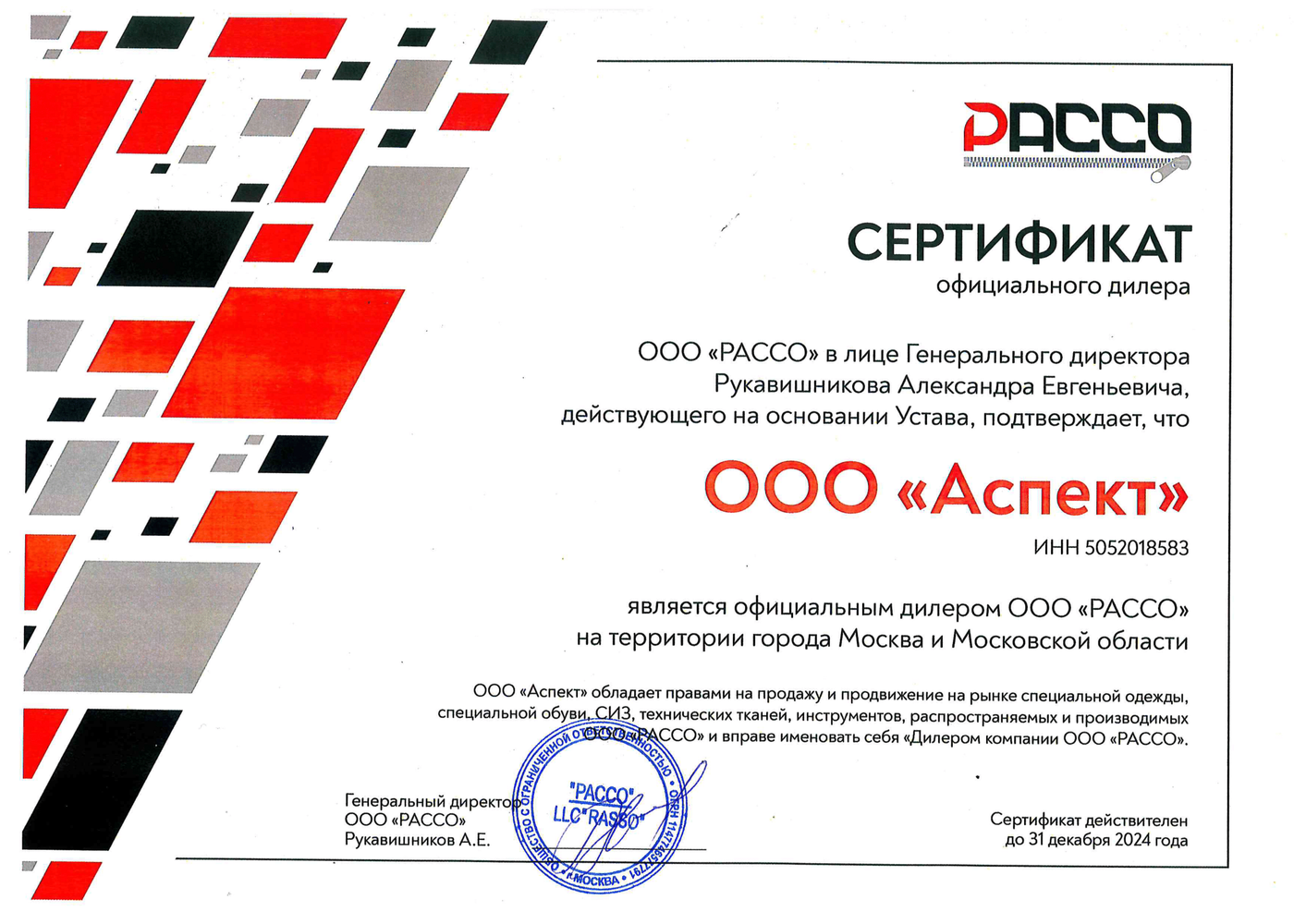 Выражаем глубокую признательность и искреннею благодарность вашей компании ООО «АСПЕКТ»‚ за качественные и своевременные